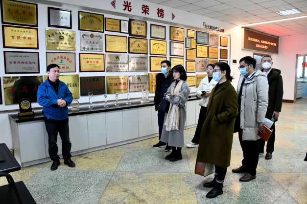 來訪客人先后參觀了信息中心、檢測中心、結算中心、水果、蔬菜兩大市場、萬噸冷庫及糧油市場。錢書記和朱總向客人詳細介紹了大市場的經營管理模式、大市場近幾年發展情況及在電子化交易結算、溯源體系建設、食品安全檢測等方面所做的工作。