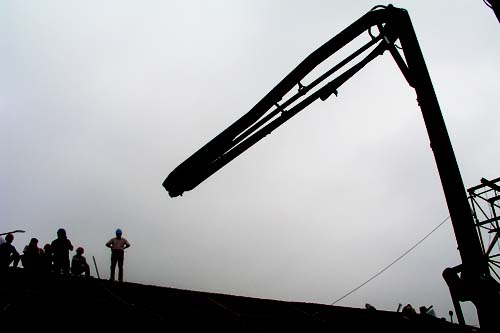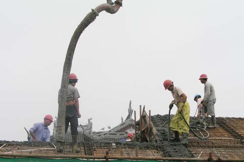 近日,位于繁華的槐古路上的無錫朝陽(yáng)茶葉市場(chǎng)工地一片繁忙,施工人員正加緊建設(shè)。圖為新建建筑開始灌注屋頂。