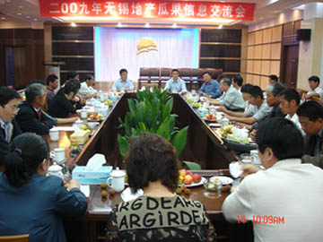 無錫蔬菜果品行業(yè)協(xié)會主辦的2009年無錫地產(chǎn)瓜果信息交流會于5月14日上午在朝陽農(nóng)產(chǎn)品大市場召開。來自無錫市各縣區(qū)的葡萄、水蜜桃、楊梅、草莓、西瓜、小水果等果品生產(chǎn)園區(qū)、有關(guān)農(nóng)業(yè)生產(chǎn)管理部門的領(lǐng)導(dǎo)、代表和朝陽股份、天惠超市的相關(guān)領(lǐng)導(dǎo)出席了會議。市工商聯(lián)領(lǐng)導(dǎo)到會作了重要講話。王漢如會長主持會議,并作會議小結(jié);汪海良副會長作了主題發(fā)言。