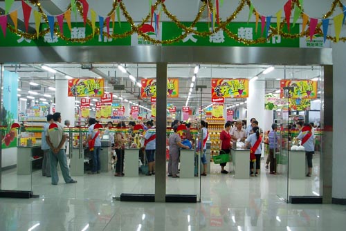 天惠堰新超市開業當天推出的多種特價商品,引眾多顧客前來購買,商場里人潮涌動,熱鬧非凡。