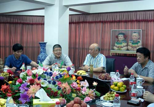 張海良董事長與客人們就農產品流通的發展和趨勢進行了深入交流,朱建祥總經理也向客人們介紹了朝陽農產品市場建設和運行情況。客人們對朝陽農產品大市場現代化交易的設施、溯源系統的建立予以高度贊賞。