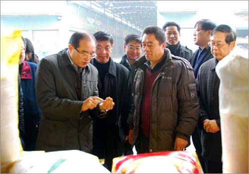 徐副市長一行還來到專門經(jīng)銷東北大米的商鋪前,仔細(xì)詢問東北大米的產(chǎn)地、品種、價格情況,當(dāng)?shù)弥@些優(yōu)質(zhì)東北大米在無錫市場很受歡迎時,他高興地向這位客商表達(dá)感謝和新年祝福。并希望各位客商一定要把好商品安全關(guān),為無錫提供更多優(yōu)質(zhì)放心的商品。