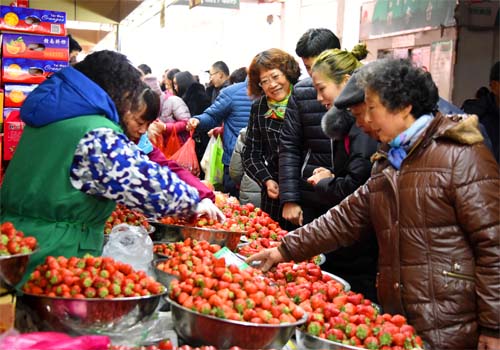 朝陽農貿市場內,充耳傳來商販的吆喝聲和人們的招呼聲,每個人臉上都喜氣洋洋,滿載而歸。