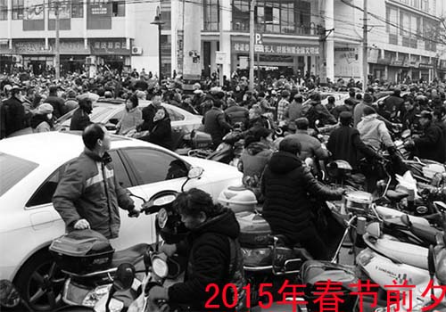 還記得去年那張如馬賽馬拉角馬過河版般照片嗎?一輛私家車深陷電動車的漩渦難以自拔,成為諸多媒體轉載的熱點(小編表示稿費至今未得到)。