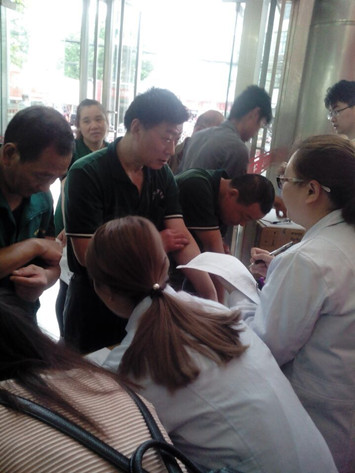 今天上午,在朝陽農貿市場,應無錫市衛計委要求,梁溪區疾控中心對朝陽農貿市場相關職業暴露人群流感病毒感染狀況進行監測。  據疾控中心醫生說,進行流感監測主要從易感人群入手,包括經常接觸雞、鴨、鵝等活禽和豬、牛、羊、豆制品等商品的攤主,目的是早發現、早治療,降低死亡率,保護人民生命健康和財產安全。該抽血檢測已持續三年,由200多名經營戶參與。