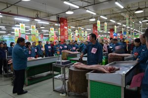 11月15日下午,天惠超市公司在中橋店組織2016年豬肉營銷人員業務技術操作練兵活動,公司全體豬肉營銷人員參與了此次練兵。活動首先由來自河南眾品食業公司的宋師傅進行現場操作示范;隨后各片區推薦的20名豬肉營銷人員進行白條分割操作。經過最終評比,來自太湖店的徐進榮、朝陽店的夏志源、永豐店的胡代昌表現突出,分別獲得一、二、三名。活動通過操作示范、操作練兵和現場觀摩的形式,進一步提升了技能、規范了標準,為今后更好地服務廣大顧客打下了基礎。
