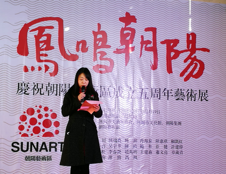 藝延梁溪,耀日月星辰;鳳鳴朝陽,顯梧桐清聲!5年前,無錫近20位藝術家相聚于梁溪朝陽之地,在無錫文化工藝品市場內成立了“朝陽藝術村”。經過5年的積淀,藝術家們的辛勤勞動,換來了藝術作品的豐收,“朝陽藝術村” 已更名為“朝陽藝術區”。2017年元月20日下午,由無錫市美術家協會、無錫市文化館、無錫朝陽集團主辦的“鳳鳴朝陽”慶祝朝陽藝術區成立五周年藝術展在朝陽藝術區中央展廳內隆重開幕。