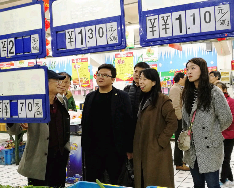 下午,一行人又來到位于市中心南禪寺旁的朝陽農貿市場,先后參觀了農貿市場一樓、二樓各經營區域、市場信息機房和天惠超市朝陽店。張董事長向考察團詳細介紹了朝陽農貿市場“低進嚴管”的運營管理模式和在菜價管理、質量溯源、物聯網建設、配套服務等方面的做法和經驗。考察團一行對朝陽農貿市場既規范又精細的管理體系非常感興趣,對農貿市場的菜價管理和天惠超市的平價菜贊不絕口,認為我集團在市場建設上注重發揮菜籃子的公益作用具有典型的示范性。他們表示要把朝陽經驗帶回去,在北京“菜籃子”建設中發揮更好的作用。 最后,雙方在農貿市場正門口合影留念,為此次考察畫上了圓滿的句號。
