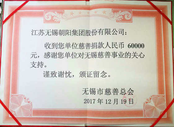 無(wú)錫朝陽(yáng)集團(tuán)向市慈善總會(huì)慈善捐款獻(xiàn)愛(ài)心