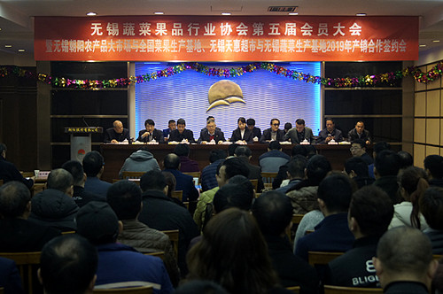 在首先進行的無錫蔬菜果品行業(yè)協(xié)會會員大會上,會員們審議通過了四屆協(xié)會四年工作總結(jié)和2019年協(xié)會主要工作設(shè)想、四屆協(xié)會財務(wù)報告、關(guān)于協(xié)會換屆改選的意見、新的協(xié)會章程和大會決議。按照民主順序,大會一致推選張君君同志繼續(xù)擔任協(xié)會五屆名譽會長,選舉楊興德同志為五屆協(xié)會會長,周介華、吳惠慶、于堅忠、蔣建康、張濤為五屆協(xié)會副會長,吳惠慶同志為五屆協(xié)會秘書長(兼);選舉金東良同志為五屆協(xié)會監(jiān)事;選舉楊興德等29人組成五屆協(xié)會理事會。 王海寶同志代表市工商聯(lián)對協(xié)會五屆會員大會的召開和新一屆領(lǐng)導(dǎo)表示祝賀,同時也對協(xié)會今后的工作指出了方向,給予殷切的期望。 在隨后舉行的2019年簽約大會上,表彰了2018年產(chǎn)銷合作的優(yōu)勝者。朝陽農(nóng)產(chǎn)品大市場與全國蔬果生產(chǎn)基地、天惠超市與無錫蔬菜生產(chǎn)基地簽訂了生產(chǎn)基地為72883畝,蔬菜、水果總量為137509噸的協(xié)議,這個數(shù)字分別比上一年增長了36.76%和60.12%。 無錫蔬菜果品行業(yè)協(xié)會名譽會長、江蘇無錫朝陽集團股份有限公司董事長張君君發(fā)表了重要講話。她分析了蔬菜果品行業(yè)目前面臨的形勢,指出了蔬果行業(yè)更好發(fā)展的方法和途徑,勉勵行業(yè)同仁團結(jié)奮斗,爭取更大成績,受到了與會者的熱烈擁護和掌聲。