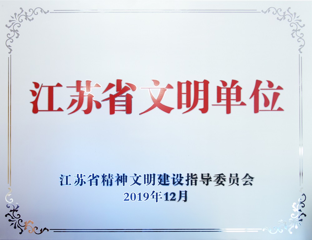 近期,江蘇無錫朝陽集團股份有限公司榮獲由江蘇省精神文明建設指導委員會頒發的“2019年度江蘇省文明單位”稱號。