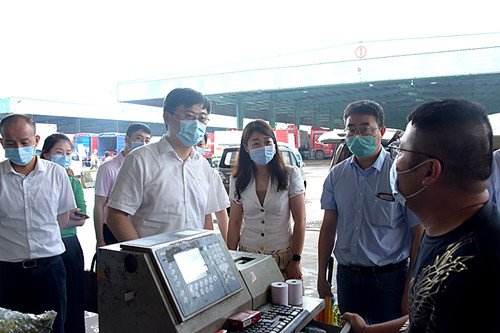 6月16日,無錫市副市長周常青領導一行,蒞臨朝陽農產品大市場檢查疫情防控工作。無錫朝陽集團董事長張君君陪同檢查。  檢查組一行先后來到大市場的各個板塊,深入了解了市場的日常運行情況,全面檢查了疫情期間市場在入場、消毒、應急預案等方面的情況。同時聽取了市場在疫情期間的防控保供工作,以及運用信息化平臺、溯源體系建設等工具,加強對各類人員、商品、車輛的梳理排查,切實維護疫情期間的各項安全的舉措,并表示認可。 周副市長強調要清醒認識當前疫情防控的復雜性、長期性和艱巨性,落實落細常態(tài)化防控各項措施,加強重點地區(qū)重點人員的管理,把牢食用農產品安全關,堅決防止疫情反彈,守護好人民群眾的生命安全和身體健康。