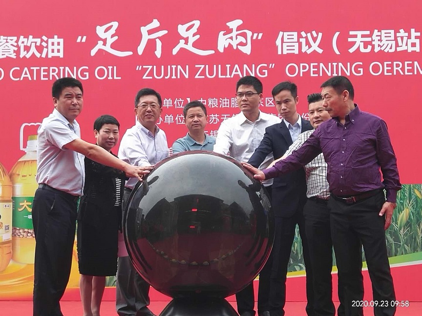 | 9月23日上午,中糧餐飲油“足斤足兩”倡議(無錫站)啟動儀式在無錫朝陽糧油市場隆重舉行。 活動儀式上,朝陽糧油市場攜手中糧油脂華東區共同發出倡導:“響應國家號召,厲行勤儉節約,倡導誠實守信;加強行業自律,推進糧食安全信用體系建設,踐行企業責任;我們倡議糧油經營戶要始終堅持誠信經營,重合同,守信用,堅持銷售合法合規、足斤足兩的糧油商品。 朝陽糧油市場總經理徐軍代表市場做了主旨發言,無錫朝陽糧油市場將一如既往的秉承食品安全監督的職責,繼續履行糧油安全保供的社會責任,全力保障無錫糧油供應安全,全力服務經營戶做大、做強,努力打造一個市民滿意、經營戶滿意的文明規范的糧油交易品牌市場。(楊敏)