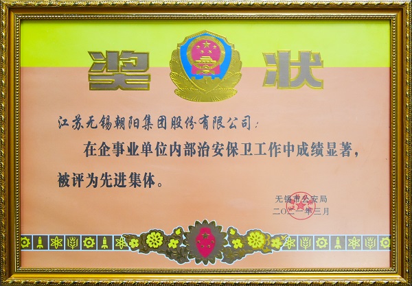 | 根據(jù)無錫市公安局發(fā)布的錫公局【2021】16號文件精神,為進一步發(fā)揮典型示范引領作用,激發(fā)廣大單位保衛(wèi)組織和人員的工作積極性,推動全市單位內(nèi)部治安保衛(wèi)工作和保衛(wèi)隊伍建設躍上一個新臺階,根據(jù)《企業(yè)事業(yè)單位內(nèi)部治安保衛(wèi)條例》第17條規(guī)定和《江蘇省機關團體企業(yè)事業(yè)單位保衛(wèi)組織和保衛(wèi)人員表彰獎勵規(guī)定》,無錫市公安局決定對68個集體和個人進行表彰獎勵。 其中,江蘇無錫朝陽集團股份有限公司在企事業(yè)單位內(nèi)部治安保衛(wèi)工作中成績顯著,被評為先進集體。