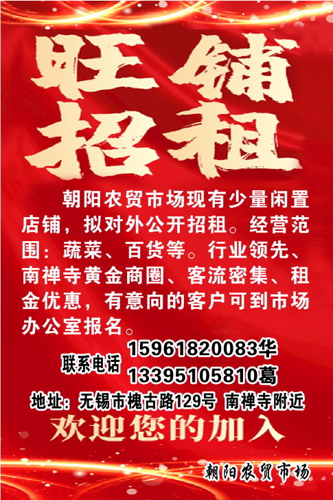 朝陽農貿市場商圈少量旺鋪招租,虛位以待!