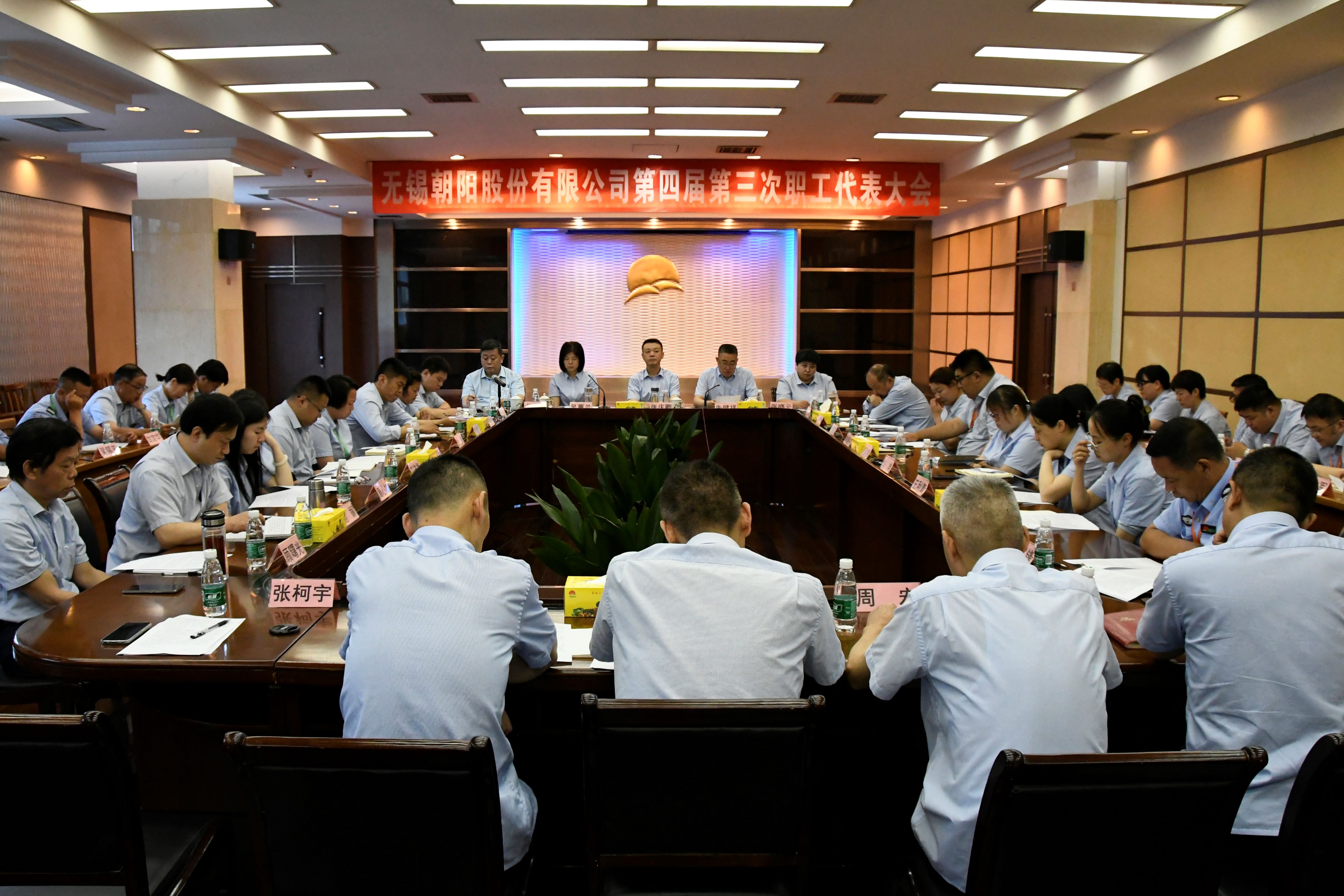無錫朝陽股份有限公司第四屆第三次職代會于2023年7月7日上午10點,在錫澄大廈二樓會議室召開。本次大會應(yīng)到職工代表47名,實到代表45名。會議由朝陽股份副總經(jīng)理吳蕙蘭主持。