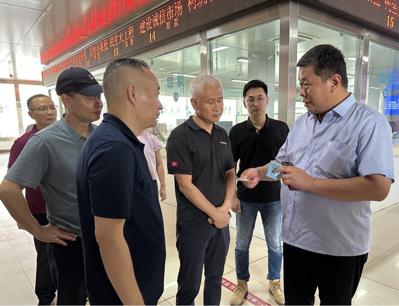 8月6日下午,廈門市市場監管局領導、夏商集團總經理谷濤、夏商農產品集團董事長李東陽一行10人到朝陽農產品大市場參觀考察,朝陽集團董事長張慶卿、朝陽股份副總經理張曉云、工會主席尤勇熱情接待了來訪客人。