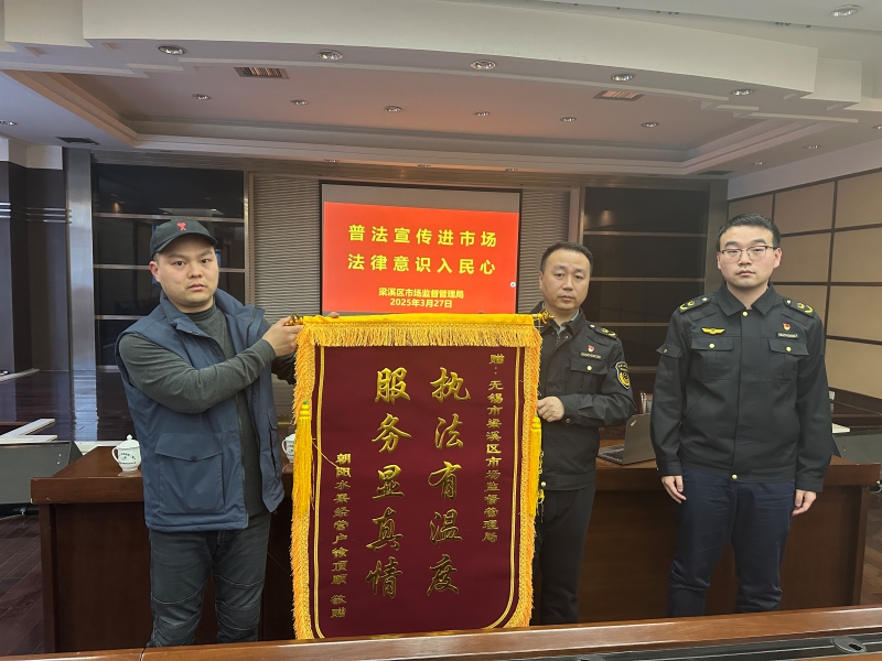 為感謝一直以來梁溪區市場監督管理局對市場及廣大經營戶的支持關心,客商代表特制錦旗贈予區局,向區局全體工作人員表示最誠摯的敬意,也祝愿區局各項工作順利,再創佳績! (供稿:張柯宇) |