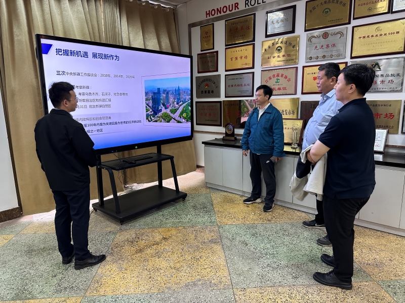 4月22日上午,新疆石河子市經開區投資服務中心招商一局副局長龔書正一行2人到朝陽農產品大市場參觀交流。朝陽股份工會主席尤勇熱情接待了來訪一行。