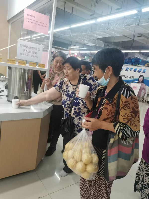 隨著大暑節氣的來臨,高溫天氣持續肆虐,給市民的日常生活帶來了諸多不便。在此酷熱之際,朝陽農貿市場展現出濃濃的人文關懷,市場積極組織三樓錫城緣快餐店老板開展便民服務,為無錫市民送上一份夏日清涼。 每天上午9點30分開始,三樓錫城緣快餐店門口便排起了有序的隊伍,工作人員熱情地為前來市場購物的老百姓免費發放酸梅湯。一杯杯酸甜可口的酸梅湯,不僅驅散了夏日的燥熱,更讓市民們感受到了朝陽農貿市場的愛意與關懷。 此次免費發放酸梅湯的活動,是朝陽農貿市場踐行便民服務理念的生動體現。市場未來還將根據季節變化和市民需求,推出更多貼心服務。朝陽農貿市場用實際行動詮釋著責任與擔當,讓每一位走進朝陽農貿市場的市民都能感受到家一般的溫暖。