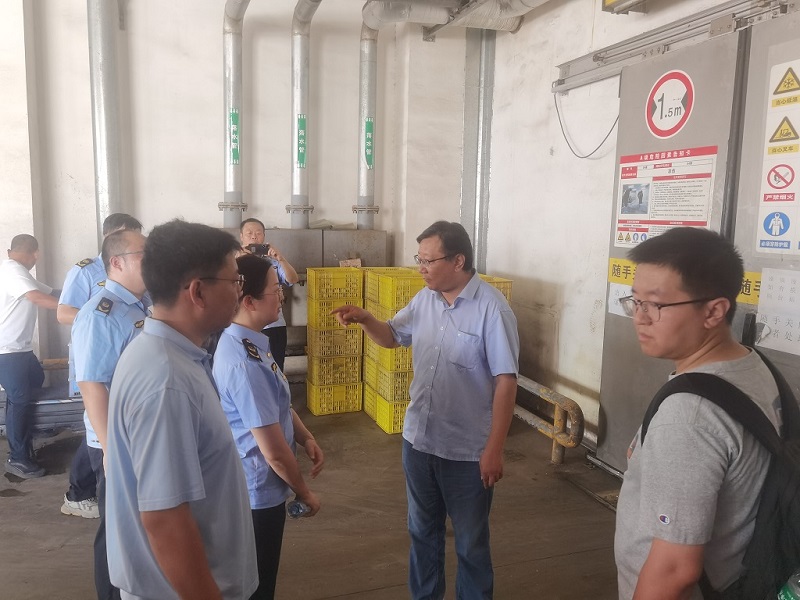 檢查組一行深入市場腹地,先后對大庫、老糧油區、冷庫和消控室進行了細致入微的檢查。市場負責人奚赟賾和安全管理員石登全程陪同,并就市場日常安全管理措施進行了詳細介紹。