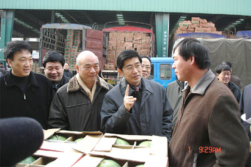 2月1日上午,無錫市市長毛小平、市委副書記張錦賢、副市長麻建國、黃繼鵬,以及市政府各職能部門的領導,來到朝陽農產品大市場了解春節供應情況,慰問市場職工和農產品經營戶。