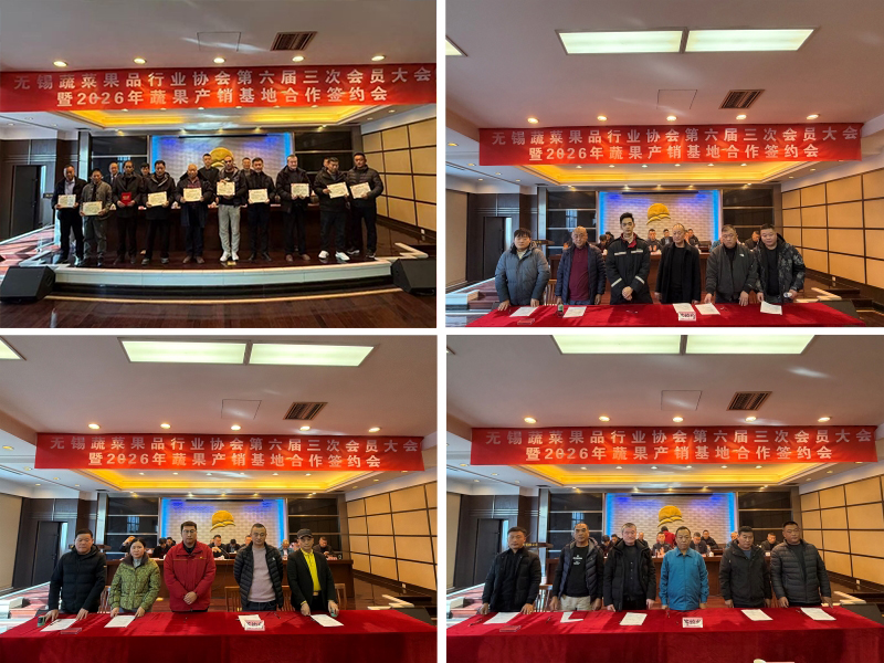 12月8日上午,無錫蔬菜果品行業(yè)協(xié)會六屆三次會員大會暨2026年蔬果產(chǎn)銷基地合作簽約會在朝陽農(nóng)產(chǎn)品大市場召開。無錫蔬菜果品行業(yè)協(xié)會會員、全國及無錫蔬果生產(chǎn)基地代表、蔬果行業(yè)相關(guān)單位及朝陽股份、天惠超市工作人員共167人參會。無錫日報、江南晚報、無錫廣播電視臺等主流媒體記者到會采訪。  無錫蔬菜果品行業(yè)協(xié)會會長、無錫朝陽集團董事長、總經(jīng)理張慶卿作了題為《凝心聚力促發(fā)展 守正創(chuàng)新譜新篇》的報告,對協(xié)會2025年工作進行了總結(jié),并對2026年主要工作要點作了展望。他號召全體會員認真貫徹黨和國家的方針政策,持續(xù)推動產(chǎn)銷對接,加強品牌建設(shè),努力為無錫蔬菜果品行業(yè)的繁榮與發(fā)展貢獻更大力量。  大會審議并通過了《無錫蔬菜果品行業(yè)協(xié)會2025年工作小結(jié)暨2026年工作要點》《2025年協(xié)會財務(wù)報告》《2025年協(xié)會監(jiān)事會報告》。 在交流發(fā)言階段,無錫朝陽股份有限公司總經(jīng)理朱健祥、無錫天惠超市股份有限公司總經(jīng)理劉彥、無錫蔬菜生產(chǎn)基地代表戚全芳分別結(jié)合行業(yè)現(xiàn)狀與發(fā)展趨勢分享經(jīng)驗、建言獻策,鼓勵全體會員高質(zhì)量推進各項工作,爭取更大成果。 朝陽集團顧問、協(xié)會上屆會長楊興德對協(xié)會六屆三次會員大會的召開表示祝賀。他充分肯定協(xié)會過去一年在服務(wù)行業(yè)、促進產(chǎn)銷等方面的工作成效,并指出,當(dāng)前行業(yè)發(fā)展機遇與挑戰(zhàn)并存,協(xié)會要堅持政治引領(lǐng),深入學(xué)習(xí)貫徹黨的二十大關(guān)于鄉(xiāng)村振興、農(nóng)業(yè)強國等戰(zhàn)略部署;要強化橋梁功能,精準(zhǔn)服務(wù)會員需求,維護行業(yè)合法權(quán)益;要聚力產(chǎn)業(yè)升級,推動綠色生產(chǎn)、科技創(chuàng)新與品牌建設(shè);同時要加強行業(yè)自律與自身建設(shè)。他勉勵協(xié)會和全體會員堅定信心、開拓創(chuàng)新,為無錫蔬果行業(yè)高質(zhì)量發(fā)展和新時代工商名城建設(shè)貢獻更大力量。 在2026年蔬果產(chǎn)銷基地合作簽約會上,朝陽股份對2025年產(chǎn)銷合作中的優(yōu)秀單位進行了表彰。朝陽農(nóng)產(chǎn)品大市場與全國蔬果生產(chǎn)基地、天惠超市與無錫本地蔬菜生產(chǎn)基地分別簽訂了新一年的產(chǎn)銷合作協(xié)議。本次簽約基地數(shù)量共計88個,簽約總面積15.2萬畝,同比上升36.12%,簽約總上市量40.2萬噸,同比上升31.52%。其中,天惠超市簽約基地38個,與去年持平;簽約基地面積680.5畝,同比上升1.8%;簽約上市量7735噸,同比上升6.28%。