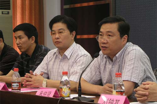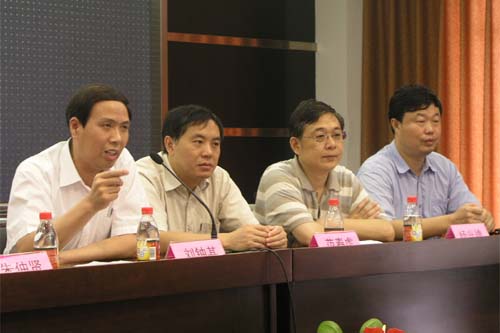 江南大學網絡中心蔡明副教授詳細介紹了項目情況,朝陽集團總經理楊興德、江南大學科研處處長葛明橋代表項目承擔單位分別做了發言,劉鐘其局長、朱仲賢副秘書長分別作了講話。 |